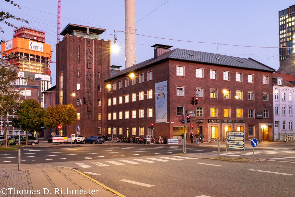 Badeanstalten 'Spanien' i Aarhus før mørket helt faldt på.