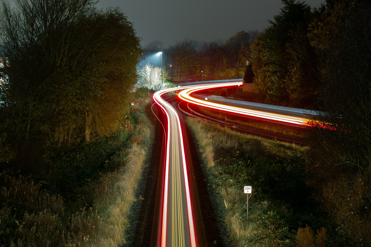 Light trails fra GoCollective RA 5483 og RA 5957 ved Vinderupvej ved Struer - IV.