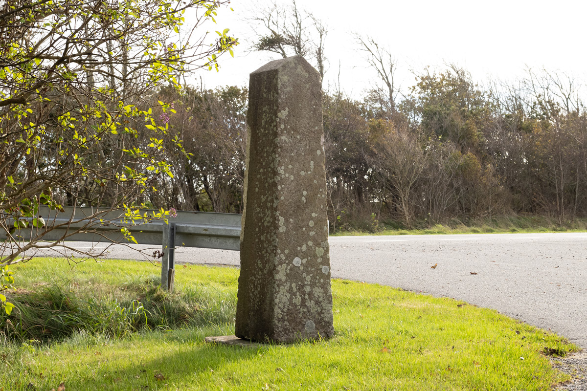 Milestenen står ved en rasterplads på Oddesundvej (A11).